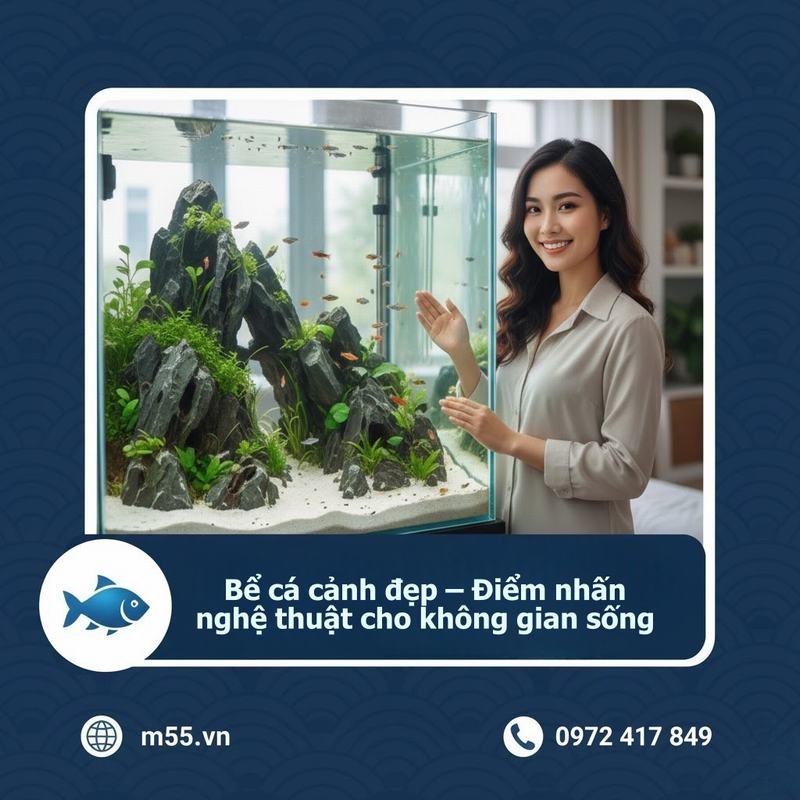 M55 Aquarium nổi bật như một điểm đến lý tưởng cho những ai đam mê thủy sinh cá cảnh. Với sứ mệnh mang đến cho khách hàng những bể cá cảnh đẹp theo phong cách nghệ thuật, đẳng cấp, M55 luôn cam kết về chất lượng, dịch vụ chăm sóc tận tâm và sáng tạo không ngừng. Tại đây, các khách hàng không chỉ mua được những mẫu bể cá đẹp, phù hợp phong cách sống mà còn nhận được sự tư vấn chuyên nghiệp từ đội ngũ kỹ thuật viên hàng đầu.