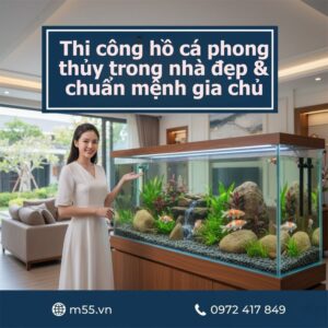 Thi công hồ cá phong thủy trong nhà đẹp & chuẩn mệnh gia chủ