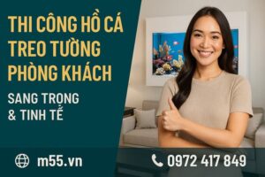 Thi công hồ cá treo tường phòng khách – Sang trọng & tinh tế