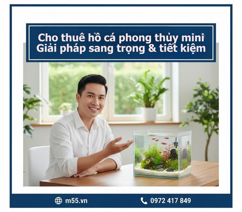 Việc sử dụng dịch vụ cho thuê hồ cá phong thủy mini đã trở thành xu hướng hiện nay, mang lại nhiều lợi ích về mặt chi phí, linh hoạt trong thiết kế và khả năng cập nhật xu hướng mới dễ dàng hơn. Các mẫu hồ phong thủy mini đa dạng về kiểu dáng, phù hợp với mọi không gian và phong thủy các mệnh. Với sự hỗ trợ từ các đơn vị uy tín như M55 Aquarium, bạn sẽ có trải nghiệm tốt nhất về chất lượng và dịch vụ, biến không gian sống và làm việc của bạn thêm phần sinh động, lành mạnh và hợp phong thủy. Hãy để chúng tôi giúp bạn kiến tạo không gian đẳng cấp, gần gũi với thiên nhiên ngay hôm nay!