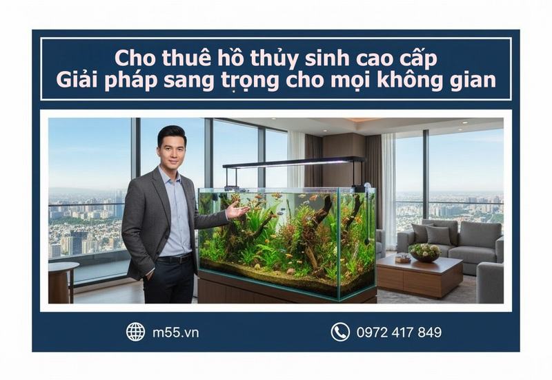 Chọn M55 Aquarium, chọn sự an tâm, uy tín và chuyên nghiệp trong dịch vụ cho thuê hồ thủy sinh cao cấp. Chúng tôi cam kết mang đến những giải pháp trang trí sang trọng, phù hợp mọi không gian, giúp bạn tỏa sáng trong mọi dịp quan trọng.