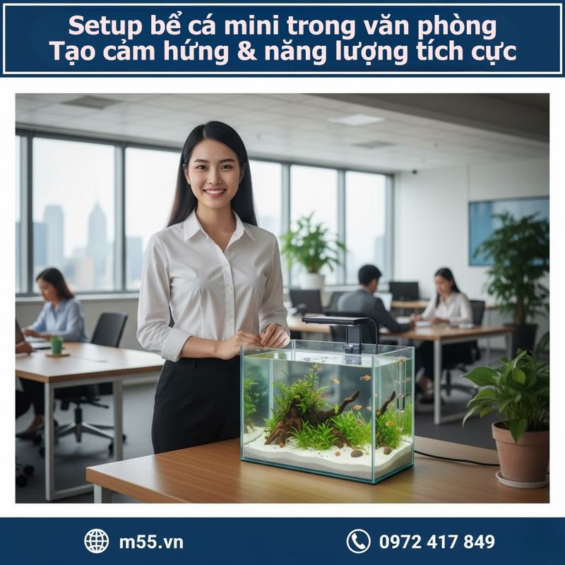 Chúng tôi còn cung cấp dịch vụ bảo dưỡng định kỳ, kiểm tra tình trạng nước, thay nước, làm sạch các thiết bị… giúp hồ cá của bạn luôn giữ được vẻ đẹp tự nhiên, bền vững theo thời gian. Với quy trình rõ ràng, chuyên nghiệp, setup bể cá mini tại M55 Aquarium là lựa chọn hàng đầu để biến không gian văn phòng của bạn trở nên sinh động, tràn đầy cảm hứng.