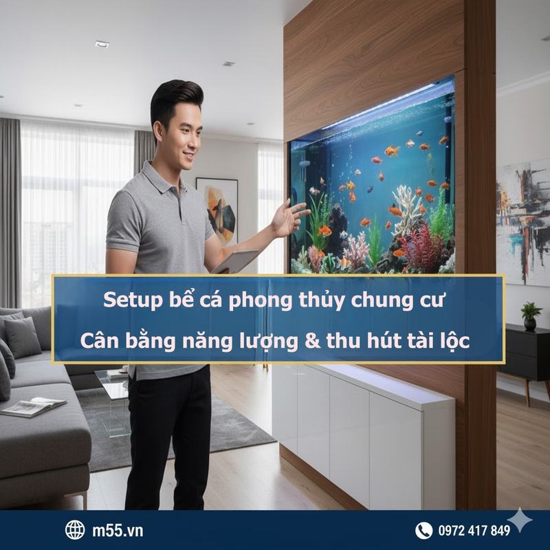 Hãy nhớ rằng, mỗi bước trong quá trình setup đều có ý nghĩa phong thủy sâu sắc, góp phần tạo ra một không gian sống hài hòa, tràn ngập năng lượng tích cực. Liên hệ với những chuyên gia phong thủy hoặc các đơn vị uy tín như M55 Aquarium để được tư vấn, thiết kế phù hợp nhất, đem lại hiệu quả tối ưu nhất cho căn hộ của bạn.