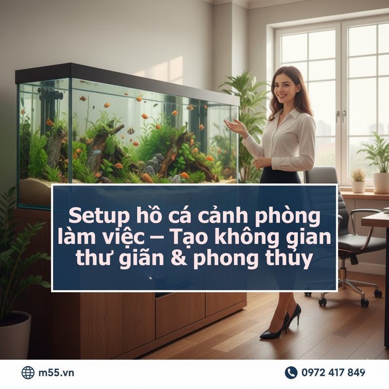 setup hồ cá cảnh phòng làm việc là một xu hướng mới mang lại nhiều lợi ích vượt trội về thư giãn, sức khỏe và phong thủy. Việc lựa chọn loại hồ phù hợp, quy trình lắp đặt chuyên nghiệp, chăm sóc đều đặn là chìa khóa giữ cho hồ cá luôn tươi sáng, sinh động và phát huy tối đa hiệu quả tích cực. Đến với M55 Aquarium, bạn sẽ nhận được dịch vụ setup hồ cá cảnh đem lại sự hài lòng và ấn tượng sâu sắc.