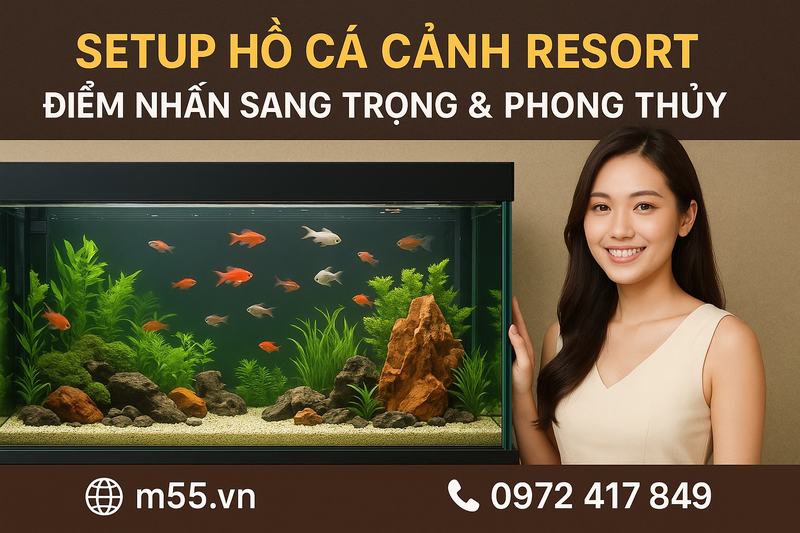 Việc setup hồ cá cảnh resort chính là một chiến lược thông minh giúp nâng cao đẳng cấp, môi trường thư giãn và ý nghĩa phong thủy của không gian nghỉ dưỡng. Từ việc khảo sát, thiết kế, lựa chọn vật liệu, cá cảnh đến thi công và bảo trì đều cần có một quy trình chuẩn, chuyên nghiệp để đảm bảo đầu ra đạt tiêu chuẩn cao nhất. Chọn đúng đơn vị uy tín như M55 Aquarium sẽ giúp bạn tiết kiệm thời gian, chi phí và đạt kết quả như mong muốn. Một hồ cá cảnh đẹp, hợp phong thủy chính là điểm nhấn đặc biệt, góp phần làm nên thành công cho resort của bạn.