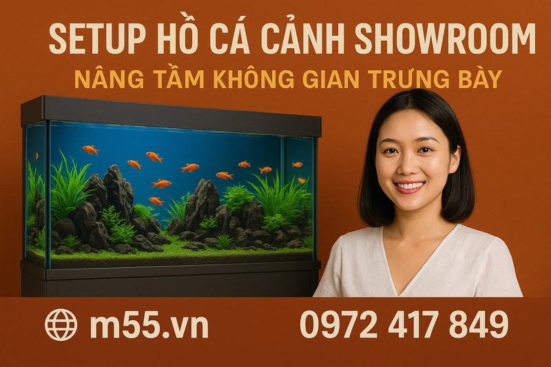 Một dự án setup hồ cá cảnh showroom thành công đòi hỏi quy trình chuẩn xác, từ khảo sát, thiết kế đến thi công và bảo trì. Tại M55 Aquarium, chúng tôi cam kết mang đến các dịch vụ chuyên nghiệp, sáng tạo và phù hợp với từng yêu cầu của quý khách hàng, giúp tạo ra không gian thủy sinh nghệ thuật – đẳng cấp và bền vững.