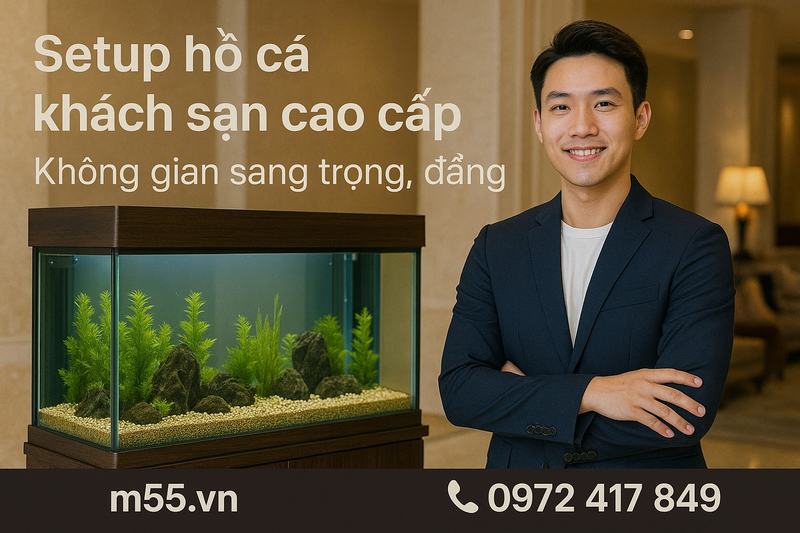 Setup hồ cá khách sạn cao cấp không chỉ là việc trang trí nội thất đơn thuần, mà còn là một nghệ thuật kết hợp giữa phong thủy, thẩm mỹ và kỹ thuật. Việc lựa chọn mẫu hồ phù hợp, quy trình thi công chuyên nghiệp và chiến lược bảo dưỡng bài bản đều góp phần tạo ra không gian sang trọng và đẳng cấp, gây ấn tượng mạnh mẽ đối với khách hàng. Với sự hỗ trợ từ M55 Aquarium, bạn hoàn toàn yên tâm để biến ý tưởng thành hiện thực, xây dựng một khách sạn thực sự nổi bật và đẳng cấp trong lòng khách hàng.