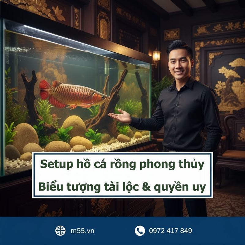 Việc setup hồ cá rồng phong thủy không chỉ là nghệ thuật trang trí mà còn là sự đầu tư cho tài lộc, sức khỏe và may mắn của gia chủ. Mỗi yếu tố từ hướng đặt, màu sắc, vật liệu đến cách chăm sóc đều đóng vai trò quan trọng trong việc khai thác tối đa ý nghĩa phong thủy của cá rồng. Đến với M55 Aquarium, bạn sẽ được tư vấn và thi công trọn gói, đảm bảo hồ cá rồng của bạn không chỉ đẳng cấp về mặt thẩm mỹ mà còn hợp phong thủy, mang lại nguồn năng lượng tích cực cho cuộc sống. Hãy để chúng tôi giúp bạn biến ước mơ sở hữu hồ cá rồng phong thủy thành hiện thực, đón nhận tài lộc, quyền uy và bình an lâu dài.
