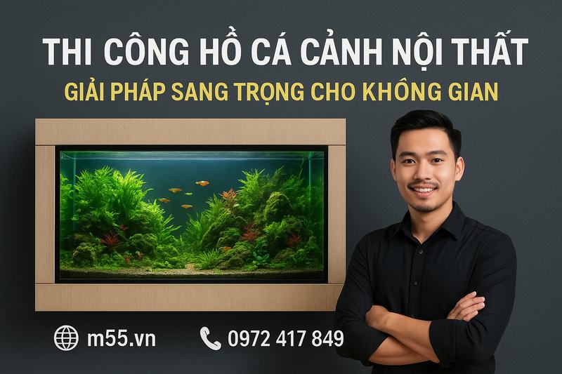 Trong cuộc sống hiện đại ngày nay, không gian sống không chỉ đơn thuần là nơi để trú ẩn mà còn là nơi thể hiện gu thẩm mỹ, phong cách sống của gia chủ. Một trong những cách để làm đẹp và nâng tầm không gian nội thất chính là thi công hồ cá cảnh nội thất. Không chỉ mang lại vẻ đẹp tự nhiên, sinh động, hồ cá cảnh còn tạo nên không khí thư thái, cân bằng tinh thần, đem lại lợi ích phong thủy đáng kể. Bài viết dưới đây sẽ phân tích rõ hơn về lợi ích, các mẫu hồ cá phổ biến, quy trình thi công chuyên nghiệp tại M55 Aquarium cùng chi phí và những lý do vì sao bạn nên lựa chọn dịch vụ thi công hồ cá cảnh nội thất chuyên nghiệp.