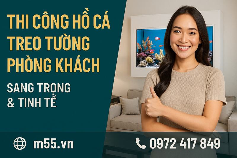 Không thể không nhắc đến M55 Aquarium – đơn vị thi công hồ cá treo tường phòng khách có uy tín hàng đầu tại TP HCM. Với nhiều năm kinh nghiệm trong lĩnh vực thủy sinh và trang trí nội thất, M55 đã trở thành thương hiệu quen thuộc được nhiều khách hàng tin tưởng.