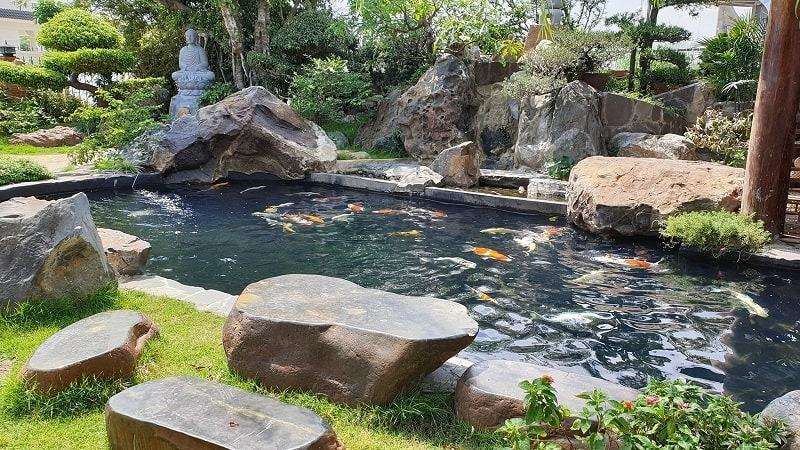 Việc đặt hồ cá koi ở trung tâm hoặc cạnh khu vực sinh hoạt chính của biệt thự giúp mang lại sự cân bằng năng lượng, thu hút tài lộc và nâng cao giá trị không gian sống. Các chất liệu thi công phổ biến như đá tự nhiên, gỗ, kính cường lực kết hợp với các tiểu cảnh đá, cây xanh sẽ giúp hồ cá trở thành một tác phẩm nghệ thuật sống động, hòa quyện giữa thiên nhiên và kiến trúc.
