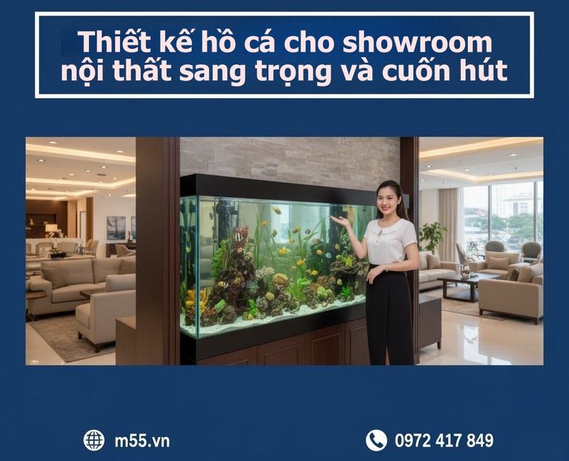 Chọn đơn vị thiết kế uy tín như M55 Aquarium để thực hiện quy trình từ tư vấn, thi công cho đến bảo trì sẽ giúp bạn yên tâm về chất lượng và độ bền của hồ cá, đồng thời góp phần nâng tầm thương hiệu. Hy vọng qua bài viết này, bạn đã có thêm kiến thức và cảm hứng để sáng tạo một không gian showroom nội thất đẹp, cuốn hút, góp phần thành công trong hoạt động kinh doanh của mình.