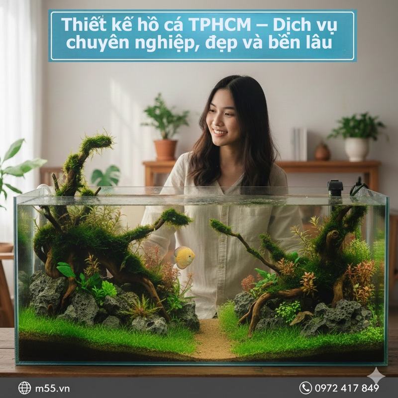thiết kế hồ cá tphcm ngày càng trở thành xu hướng sống xanh, trang trí đẳng cấp trong các không gian nội thất và ngoại thất. Việc lựa chọn dịch vụ chuyên nghiệp không chỉ giúp bạn sở hữu một hồ cá đẹp, bền lâu mà còn đảm bảo sự tiện lợi trong bảo trì và vận hành lâu dài. Với các kiểu hồ đa dạng, quy trình chuyên nghiệp và chi phí hợp lý, việc sở hữu một hồ cá đẹp tại TPHCM chưa bao giờ dễ dàng và nhanh chóng đến thế. Hãy để M55 Aquarium đồng hành cùng bạn trong hành trình biến không gian sống của bạn thành thiên đường thủy sinh tuyệt mỹ.